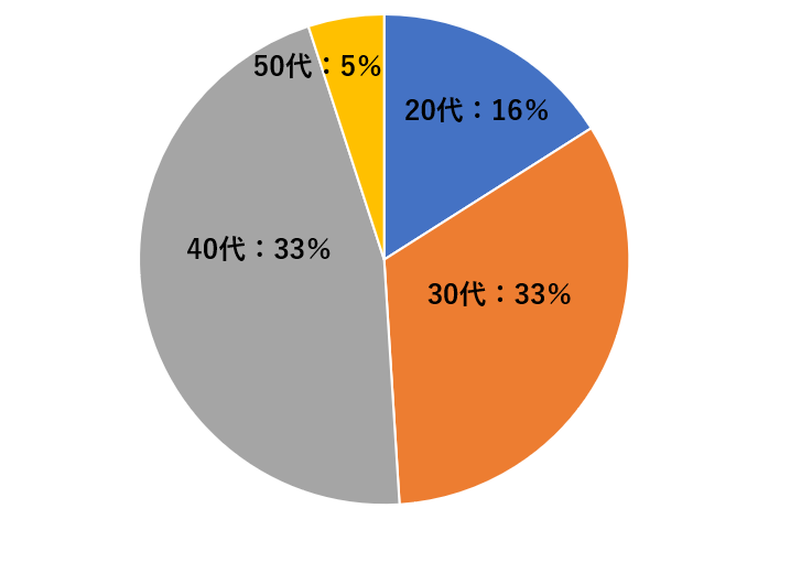 こういった想いを持つに至られる方の多くは30代以降の方々です。直近、キャリアのご相談をさせていただいた100名の方の年齢分布を調べると以下の結果でした。
