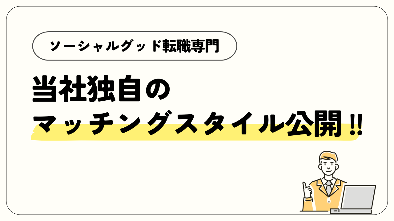 ソーシャルグッドキャリア研究所 ソーシャルグッド転職専門の当社のマッチングスタイルを公開!! | ソーシャルグッドキャリア研究所 記事の紹介 日本では、年間300万人~350万人が転職するとされています。 そのうち、約半数の方が転職エージェントを活用しているというデータもあります。(厚生労働省や民… 以下より無料の転職支援サービスへのご登録をお待ちしております。
