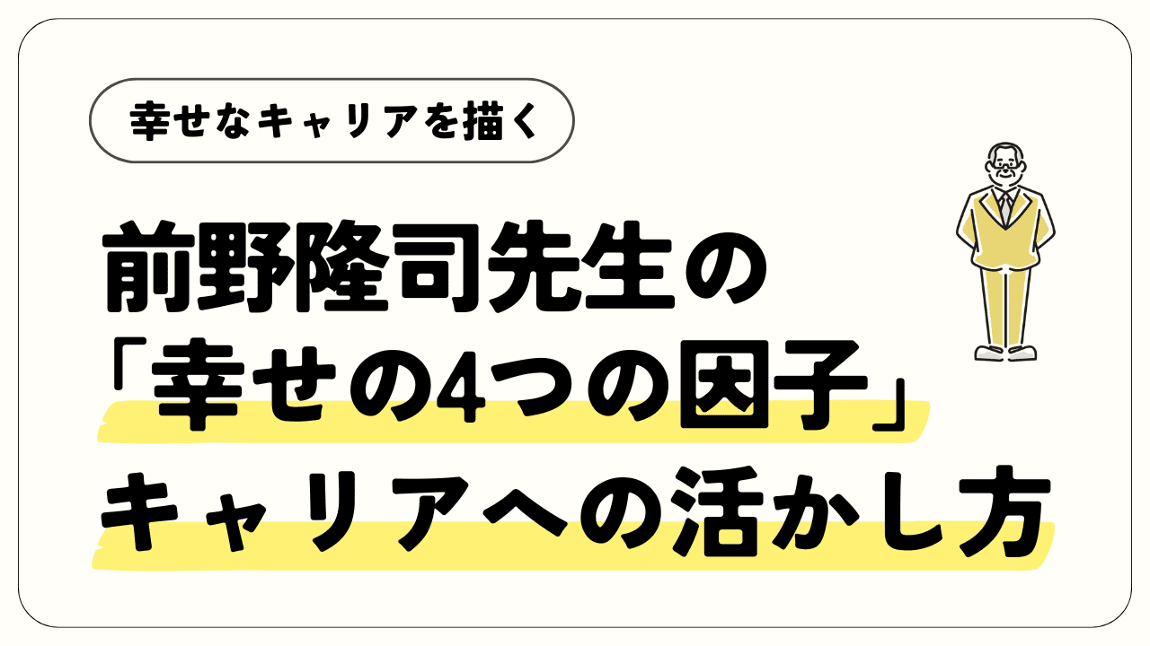 前野隆司先生の「幸せの4つの因子」は幸せでより充実したキャリア形成のヒントになります。